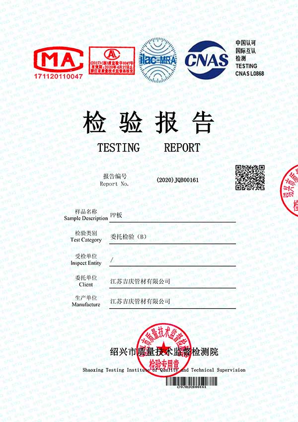 江蘇吉慶管材集團有限公司創(chuàng)辦于2010年2月,是pp管,pp管材,pp管件,pp風(fēng)管,frpp管,frpp管材,pph管,pph管材,pph管件,pph風(fēng)管,pvdf管,pvdf管材,pp儲罐,pp板材的專業(yè)化生產(chǎn)企業(yè)。公司占地30余畝,擁有各類資產(chǎn)8000余萬元,專業(yè)技術(shù)人員20余人,管材生產(chǎn)線10條,管件生產(chǎn)線11條,具備了10000余噸各類防腐塑料制品的年生產(chǎn)能力。公司通過了ISO9001-2000質(zhì)量體系認(rèn)證,同時被評為AAA信用單位,2018年公司被評為高新技術(shù)企業(yè),此后陸續(xù)取得安全生產(chǎn)管理證書等榮譽。公司位于水上花園城市----江蘇省揚中市八橋鎮(zhèn)永福路18號,交通便捷,可直接導(dǎo)航至公司園區(qū)內(nèi)。公司全體員工將以高度的敬業(yè)精神,嚴(yán)格的質(zhì)量控制理念和科學(xué)的管理方法,及時周到的服務(wù),竭力為我國塑料管道在各領(lǐng)域的推廣和應(yīng)用作出更大的貢獻!